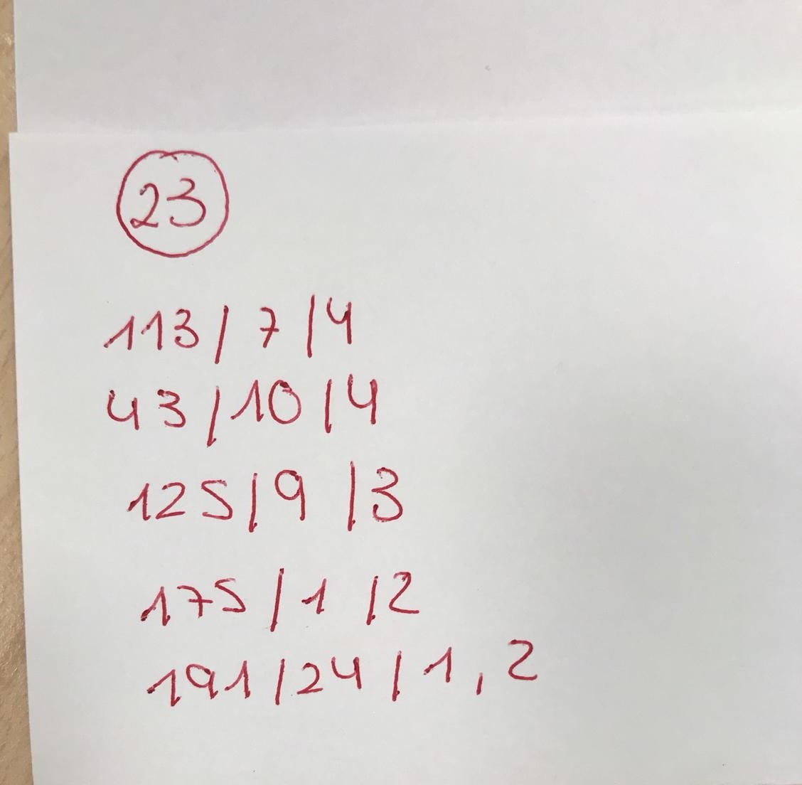 Los números que están escritos en las caretas son: